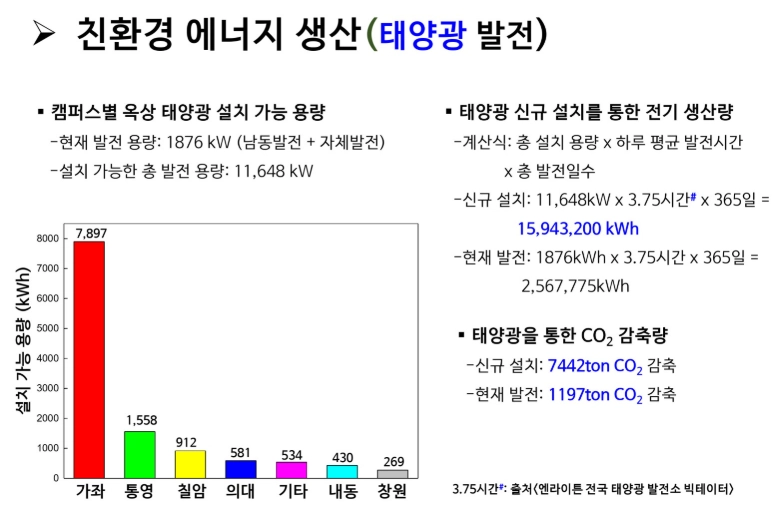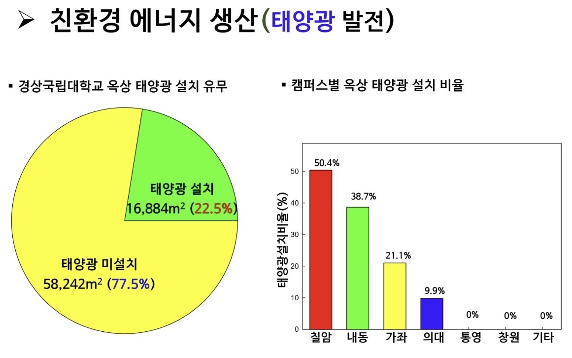 옥상 태양광 설치. 2021년 기준 경상국립대학교 옥상 태양광 설치 면적 .